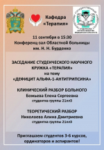 09.09.2025 08:35 Заседание студенческого научного кружка по терапии на тему «Дефицит альфа-1-антитрипсина»