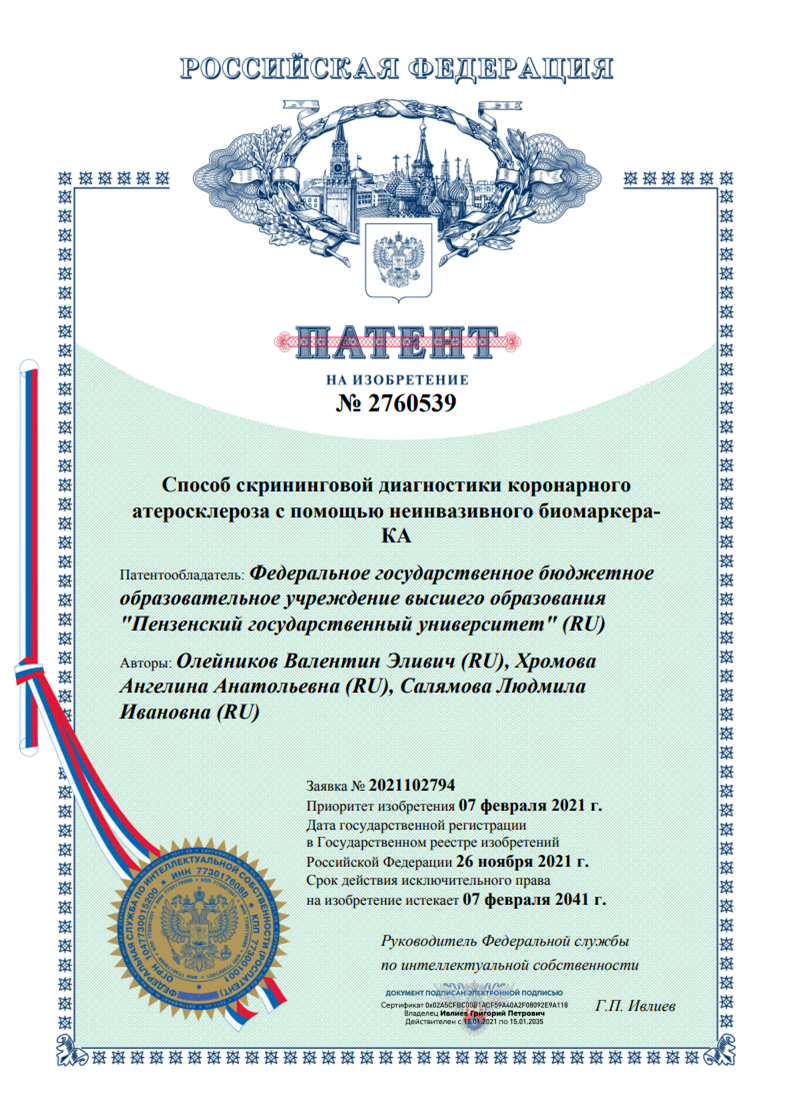 Салямова Л.И., Павленко К.И., Хромова А.А., Олейников В.Э. Возможности неинвазивной диагностики сердечно-сосудистых заболеваний, ассоциированных с атеросклерозом. Consilium Medicum. 2024;26(1):20–25
